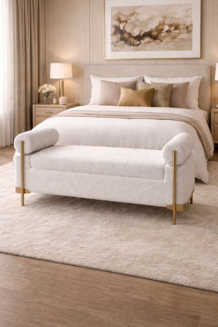 مقعد ديكور فاخر 115*40*40 لون افوايت بلمسة ذهبية