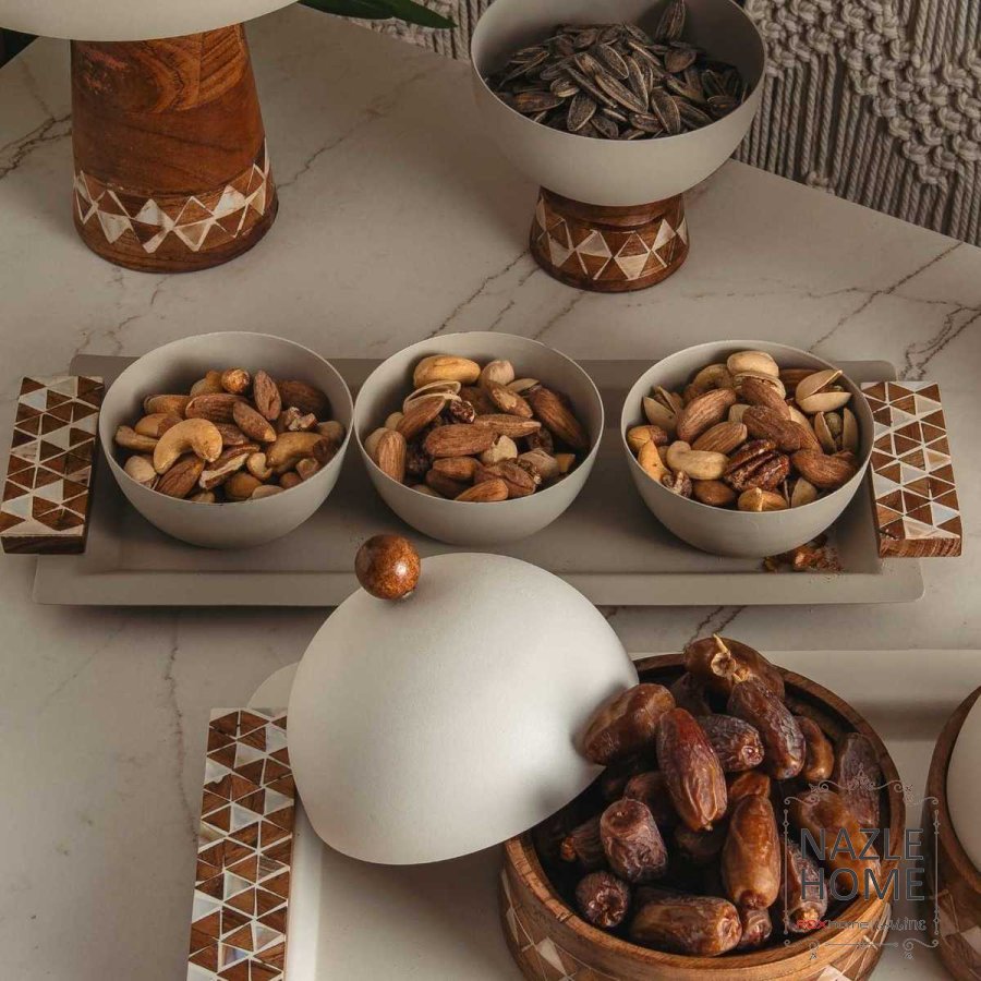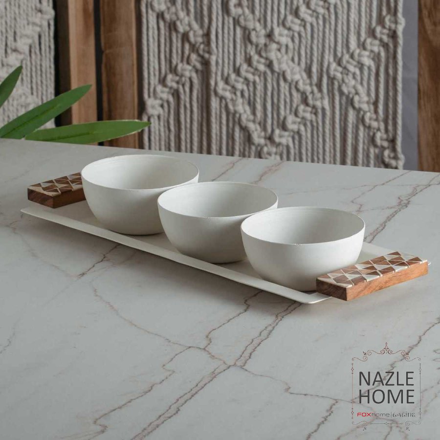 طقم صحون 3 قطع مكسرات هندي مع صينية
