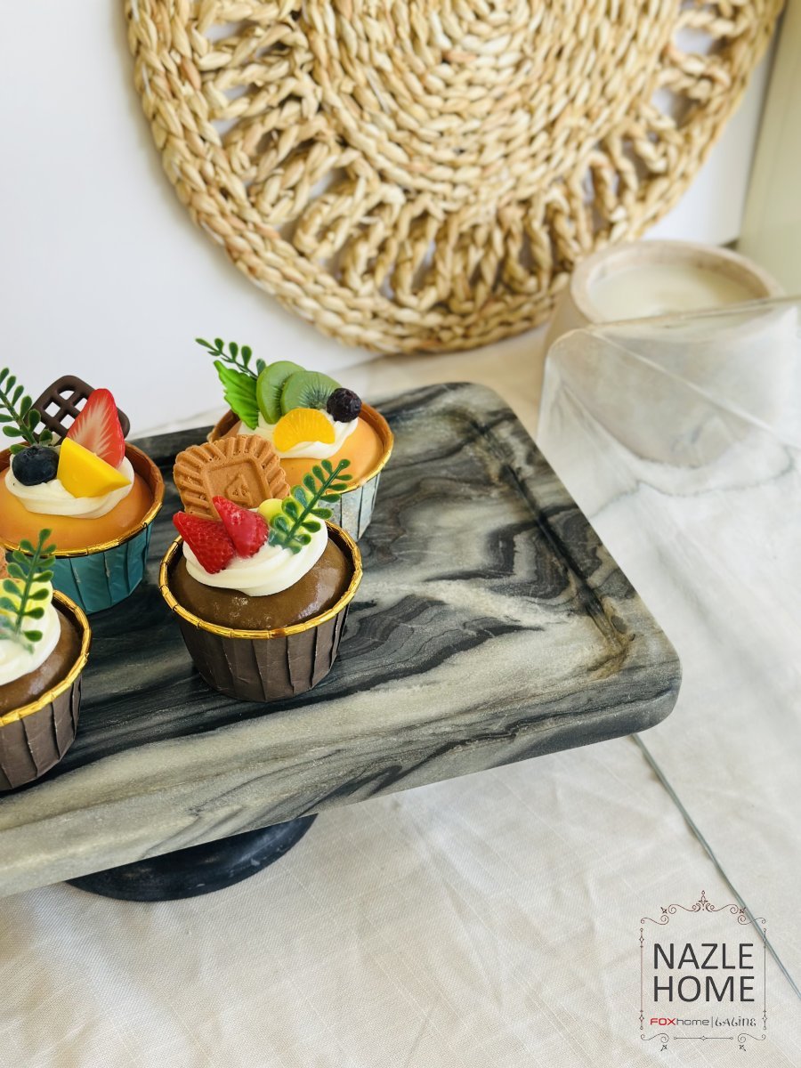 مضيفة تقديم مستطيل رخام اسود