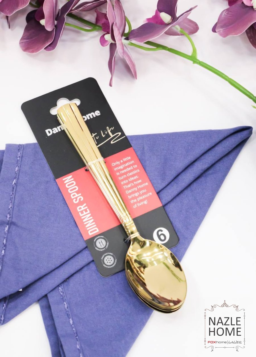 طقم ملاعق - 6 قطع - ذهبي مع نقشة حجم كبير