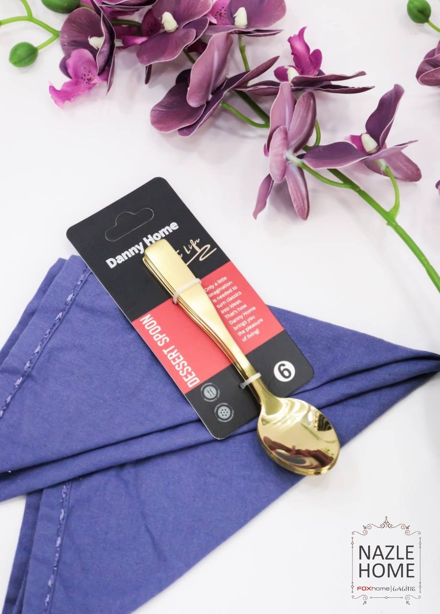طقم ملاعق حجم صغير - 6 قطع لون ذهبي سادة