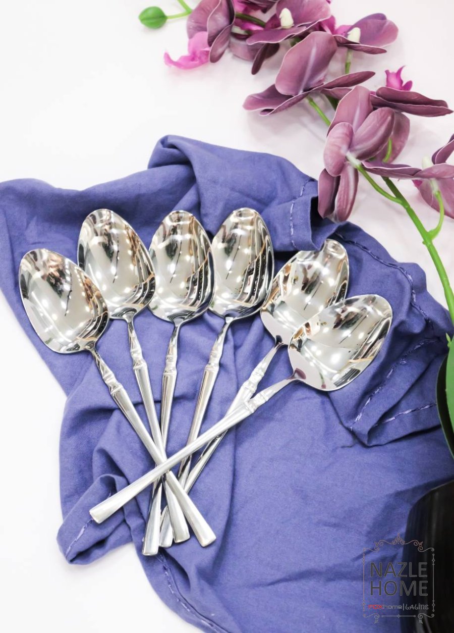 طقم ملاعق مع نقشة لون فضي - 6 قطع