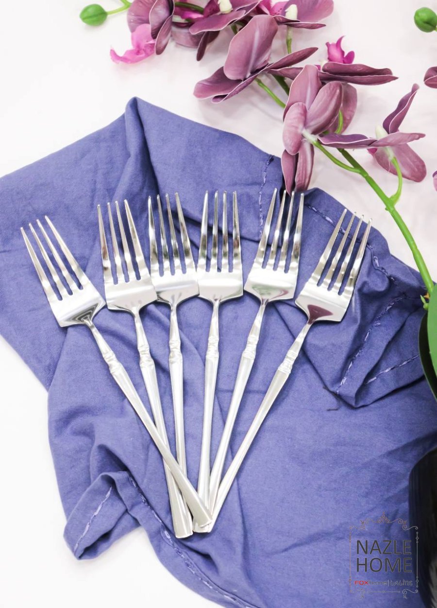 طقم شوك 6 قطع - فضي مع نقشة - حجم كبير