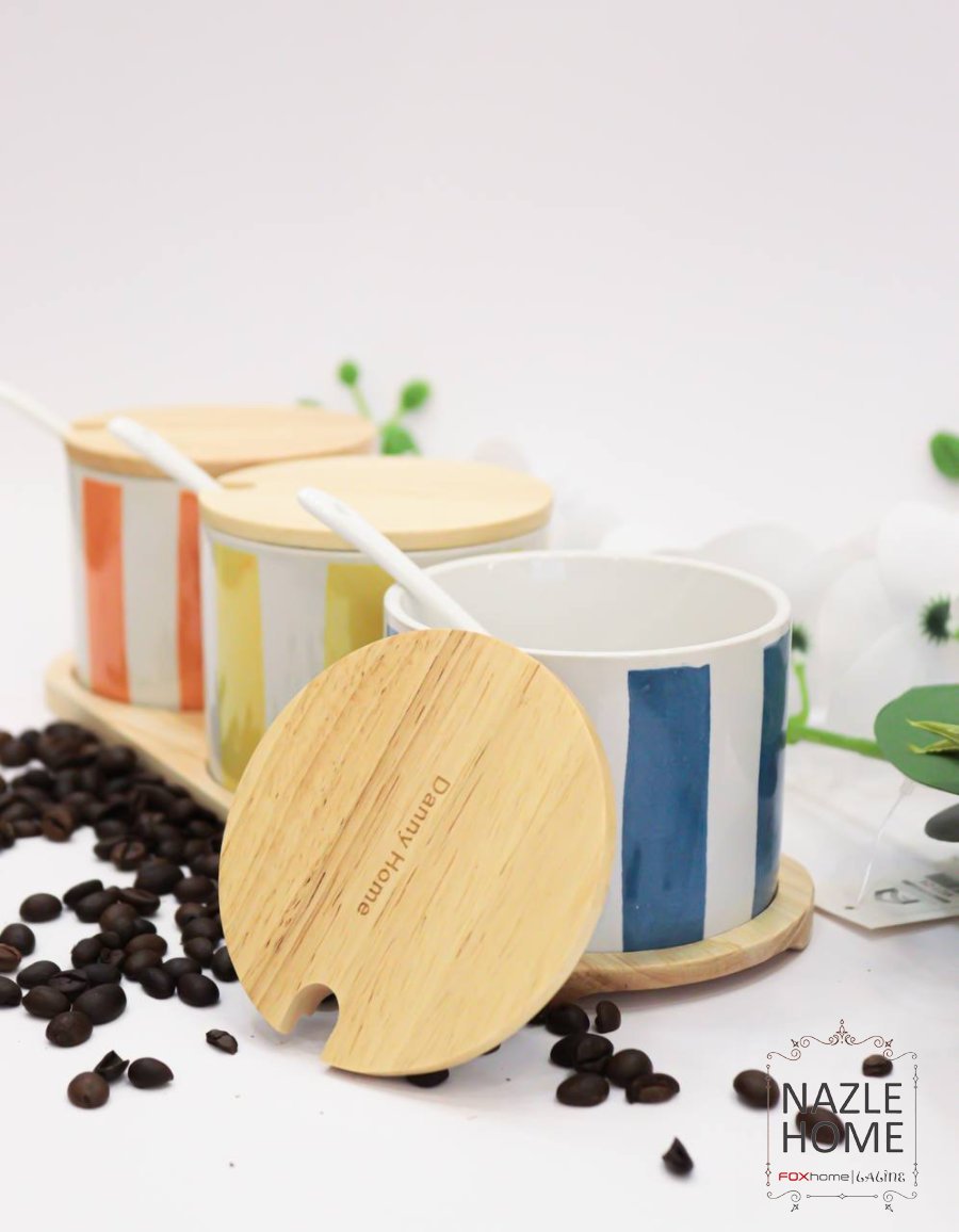 طقم سكريات ملون- مع ملاعق - غطا بامبو