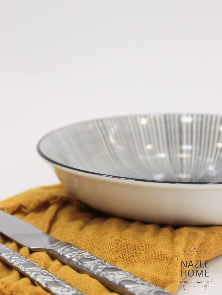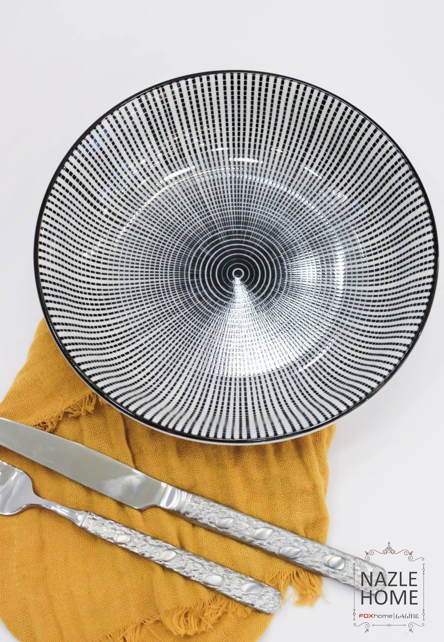 صحن مجور بحفة - اسود وابيض - حجم وسط