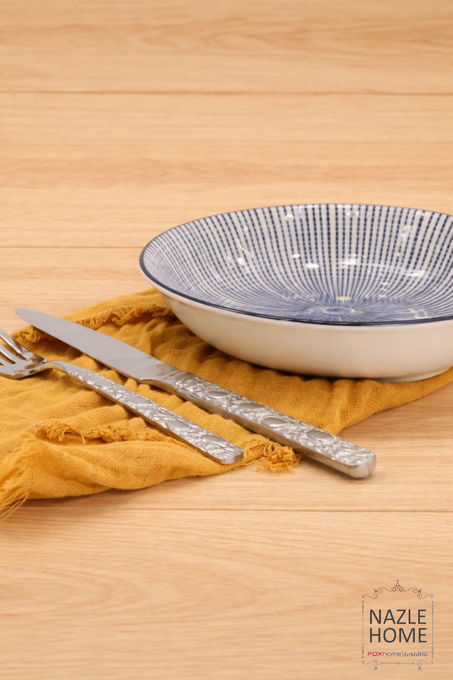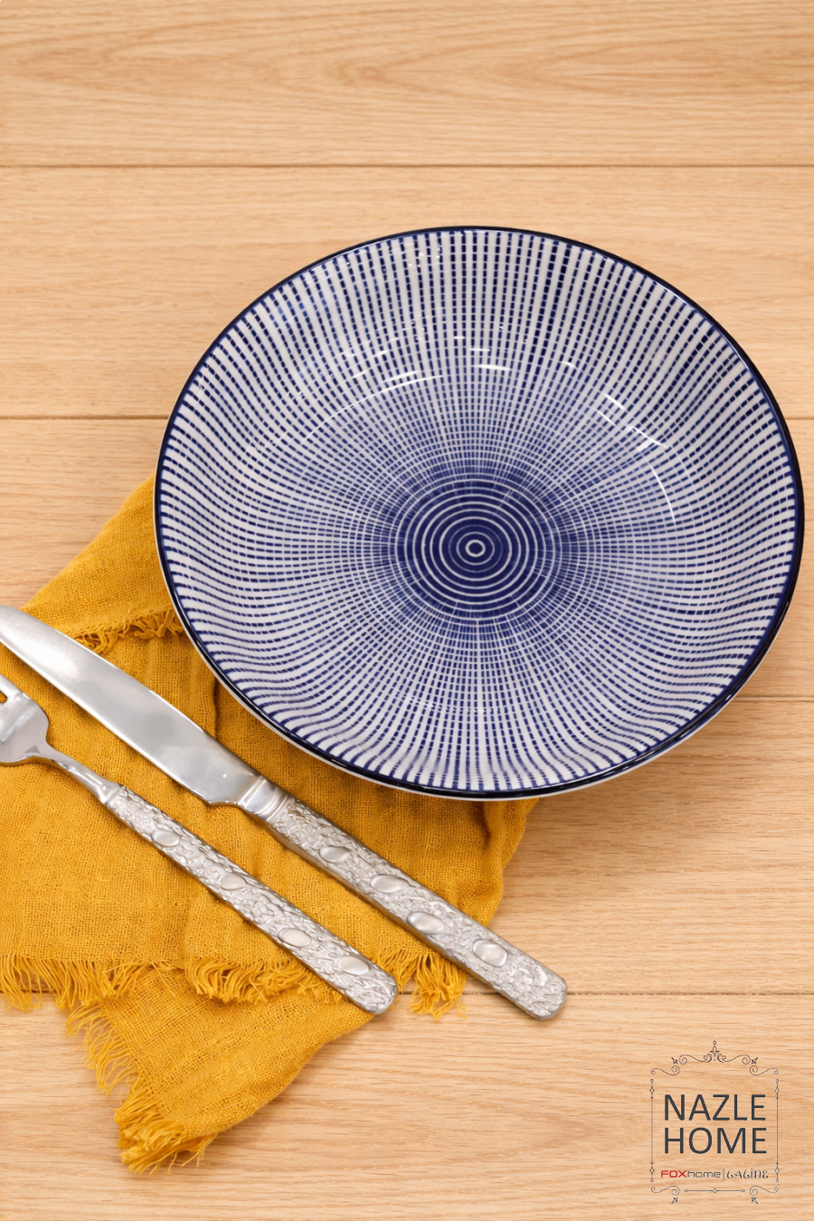 صحن مجور بحفة - ازرق وابيض مع نقشة - حجم وسط