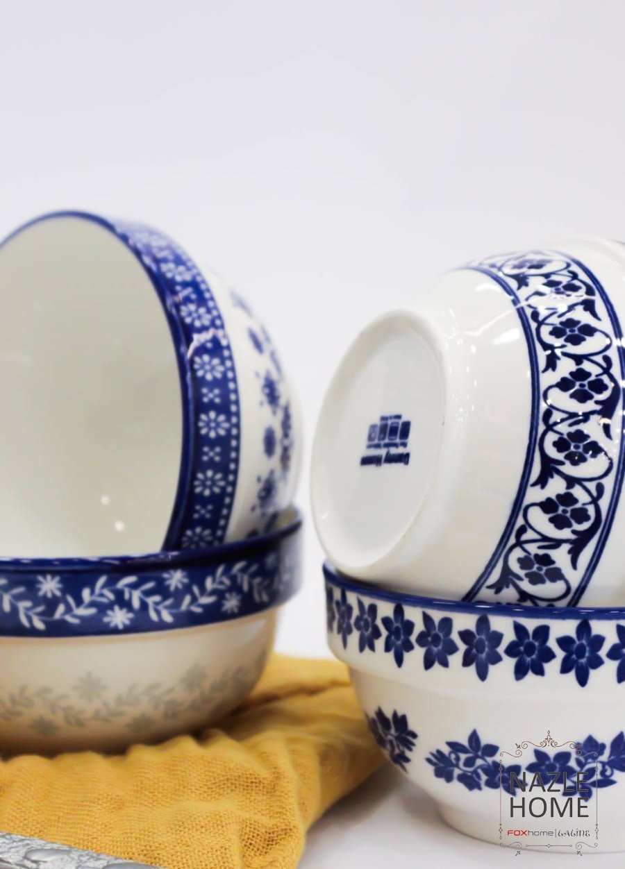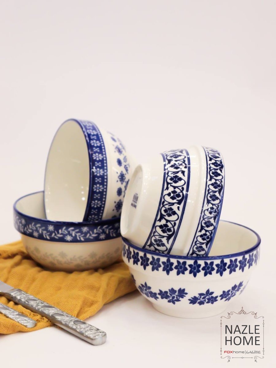 طقم صحون شوربة 10 قطع - ازرق وابيض مع نقشة