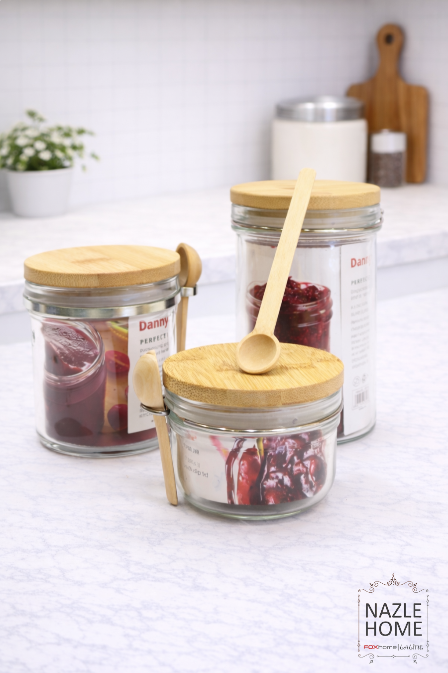 علب - مع ملعقة خشب غطاء بامبو ضغط