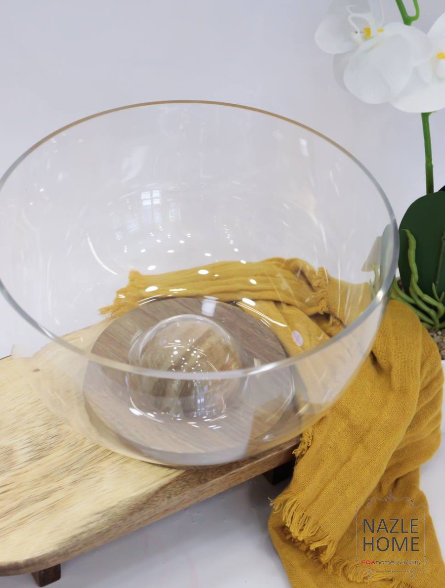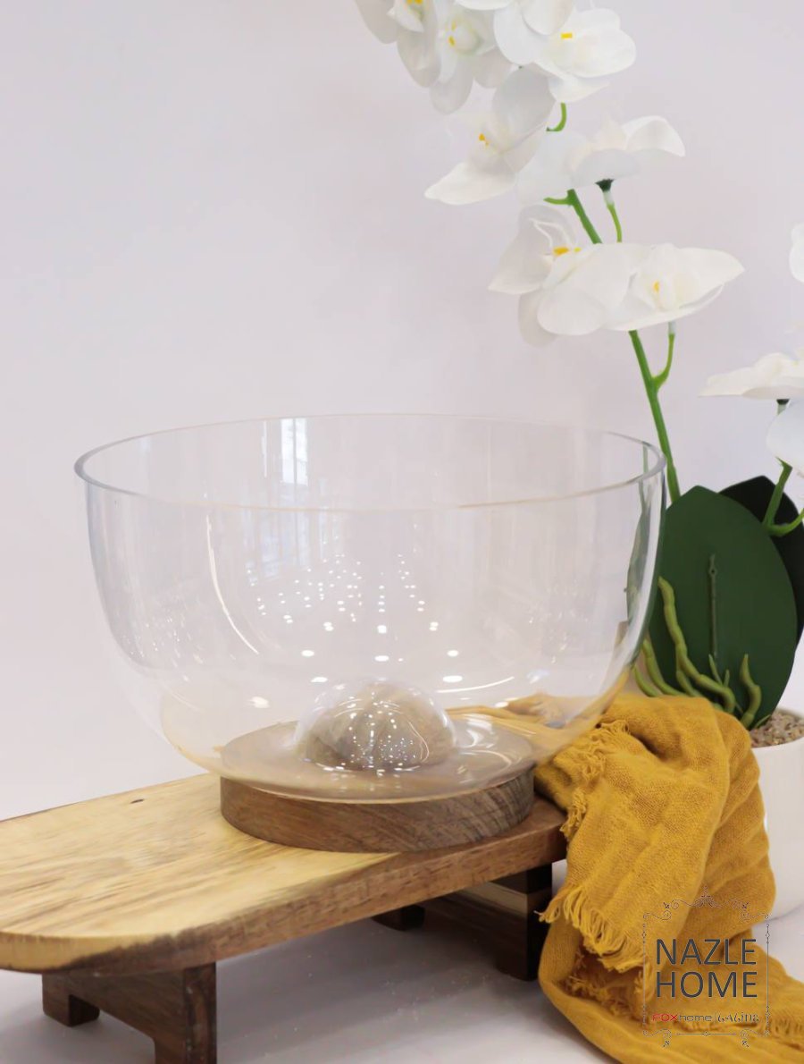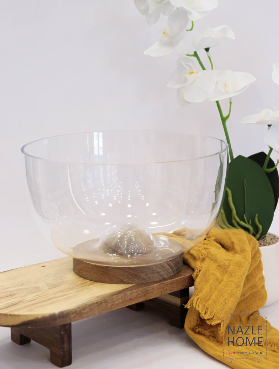 صحن سلطة مع قاعدة خشبية
