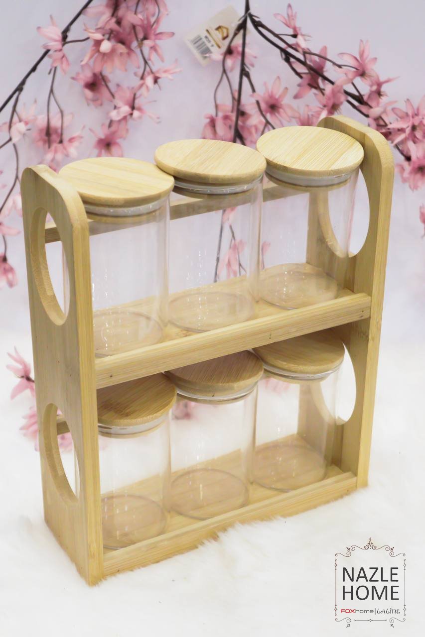 طقم سكريات خشب بامبو - 6 قطع + 6 ملاعق + ستاند