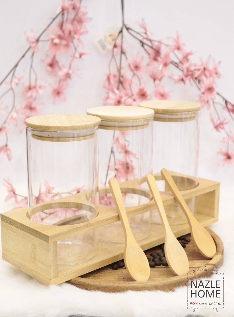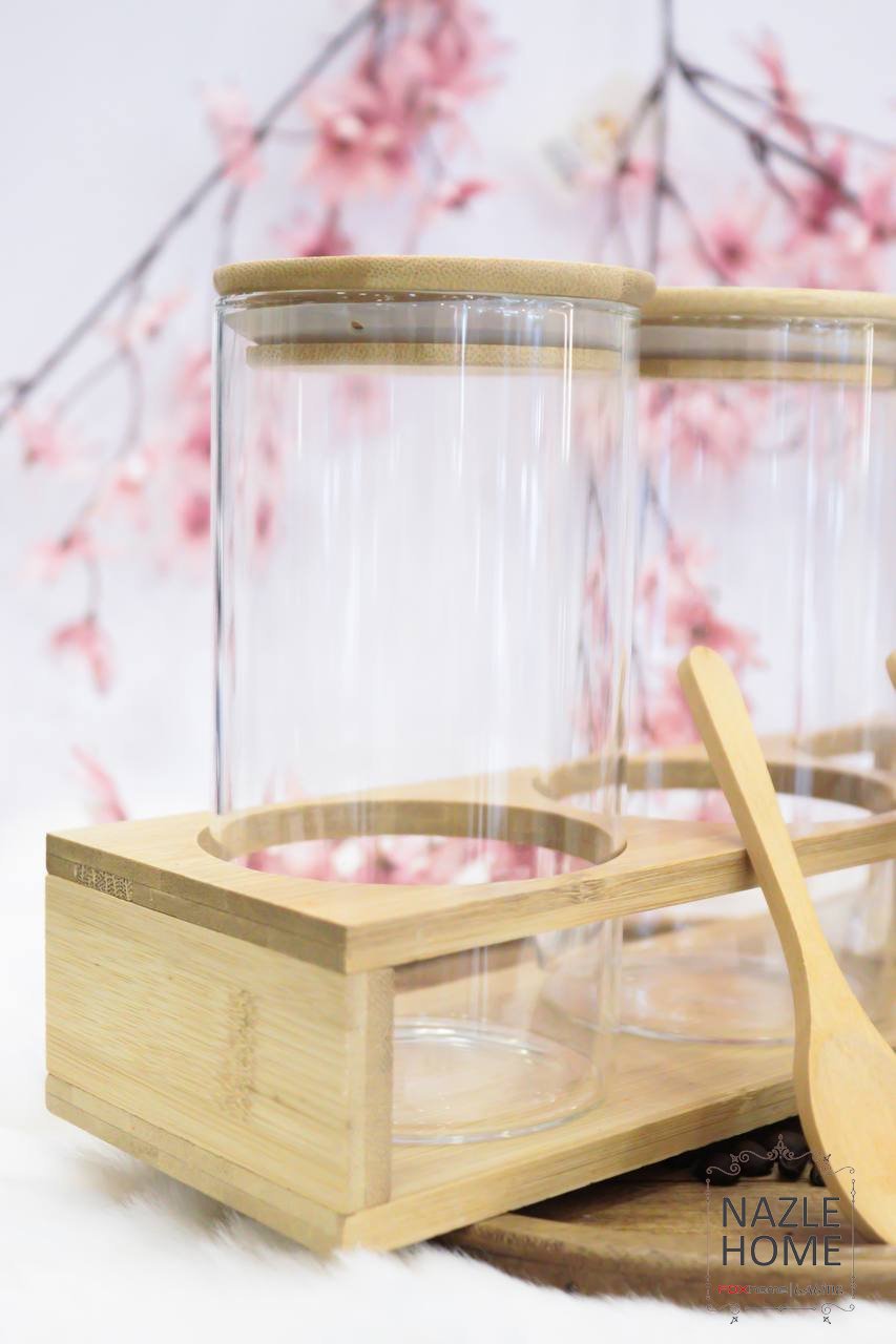 طقم سكريات حجم كبير - 3 قطع خشب بامبو + 3 ملاعق