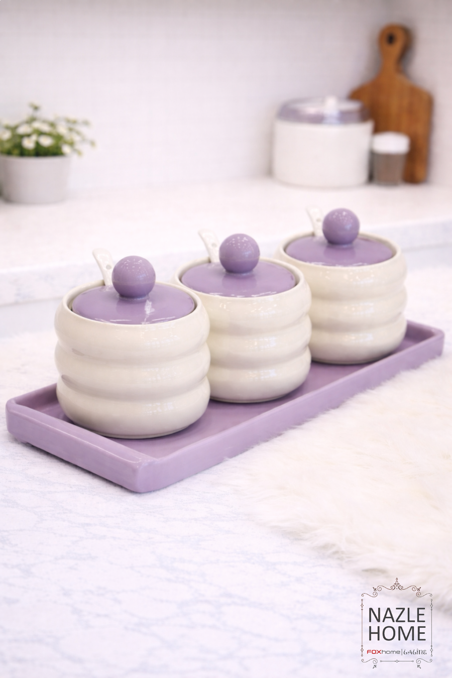 طقم سكريات 3 قطع + صينية + 3 ملاعق