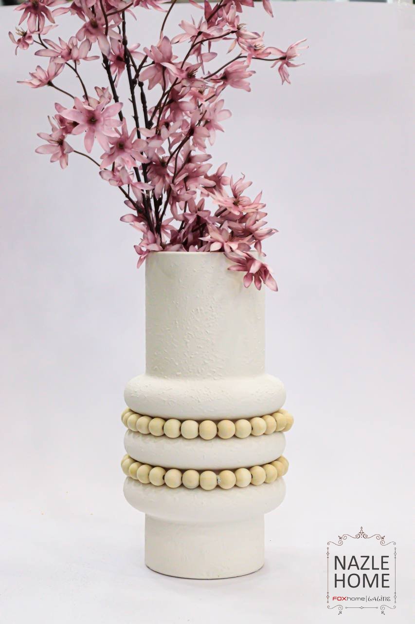 فازة رخام ابيض - مع سلسلة خشب