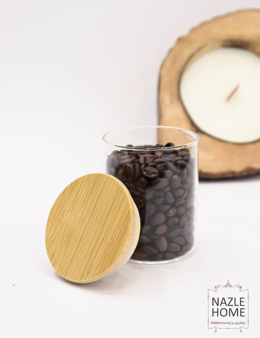 علب بهارات غطاء بامبو- حجم صغير زجاج