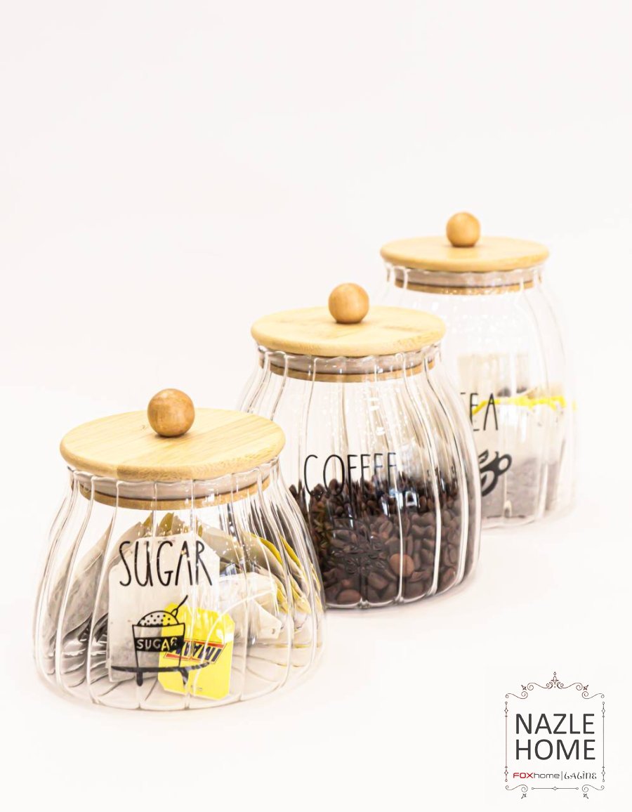 طقم سكريات 3 قطع - غطاء خشب بامبو