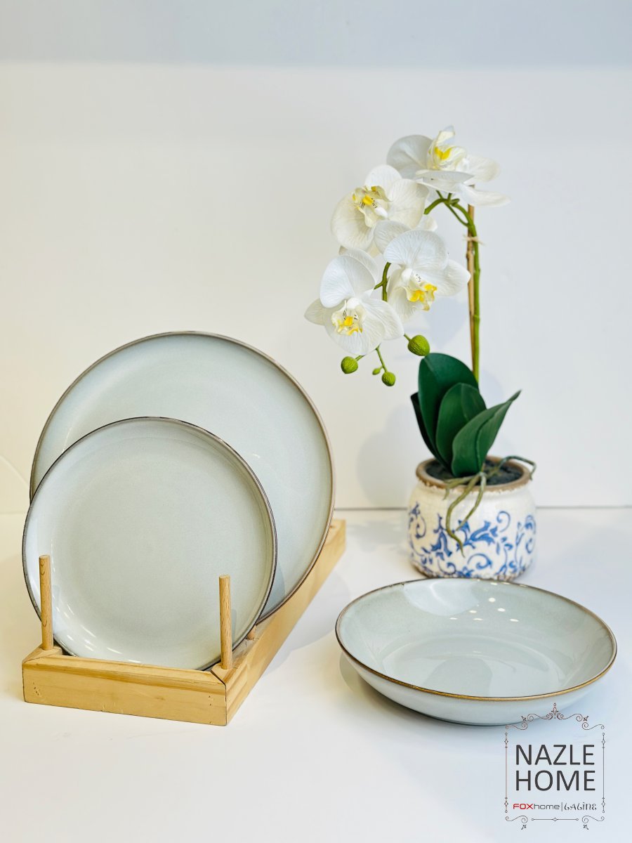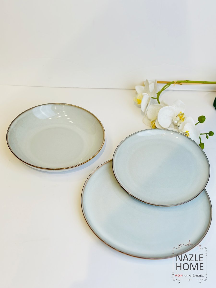 طقم صحون 18 قطعة - رمادي معتق