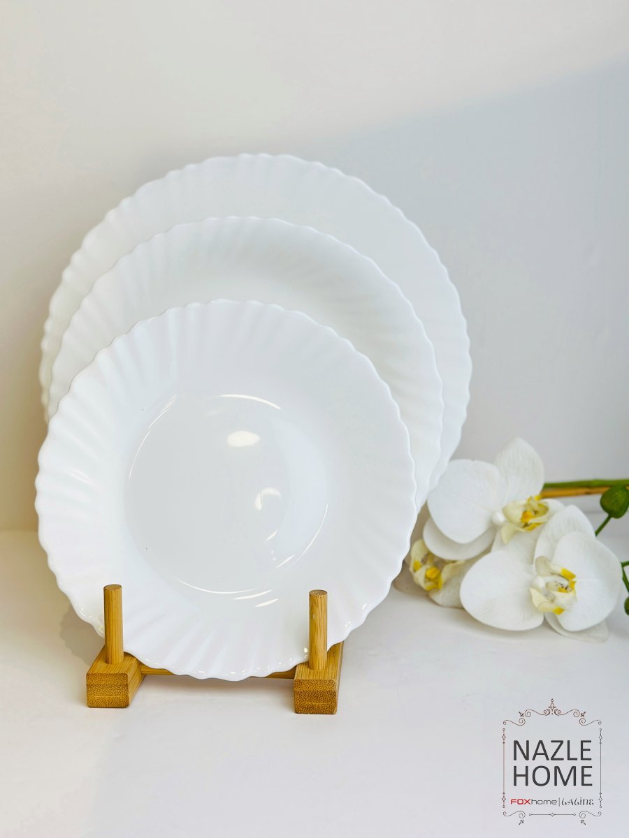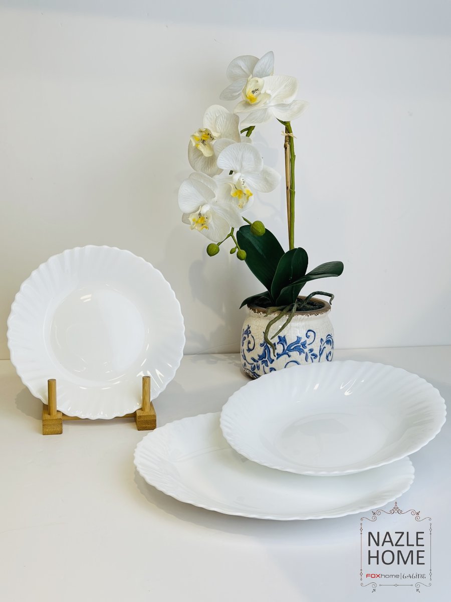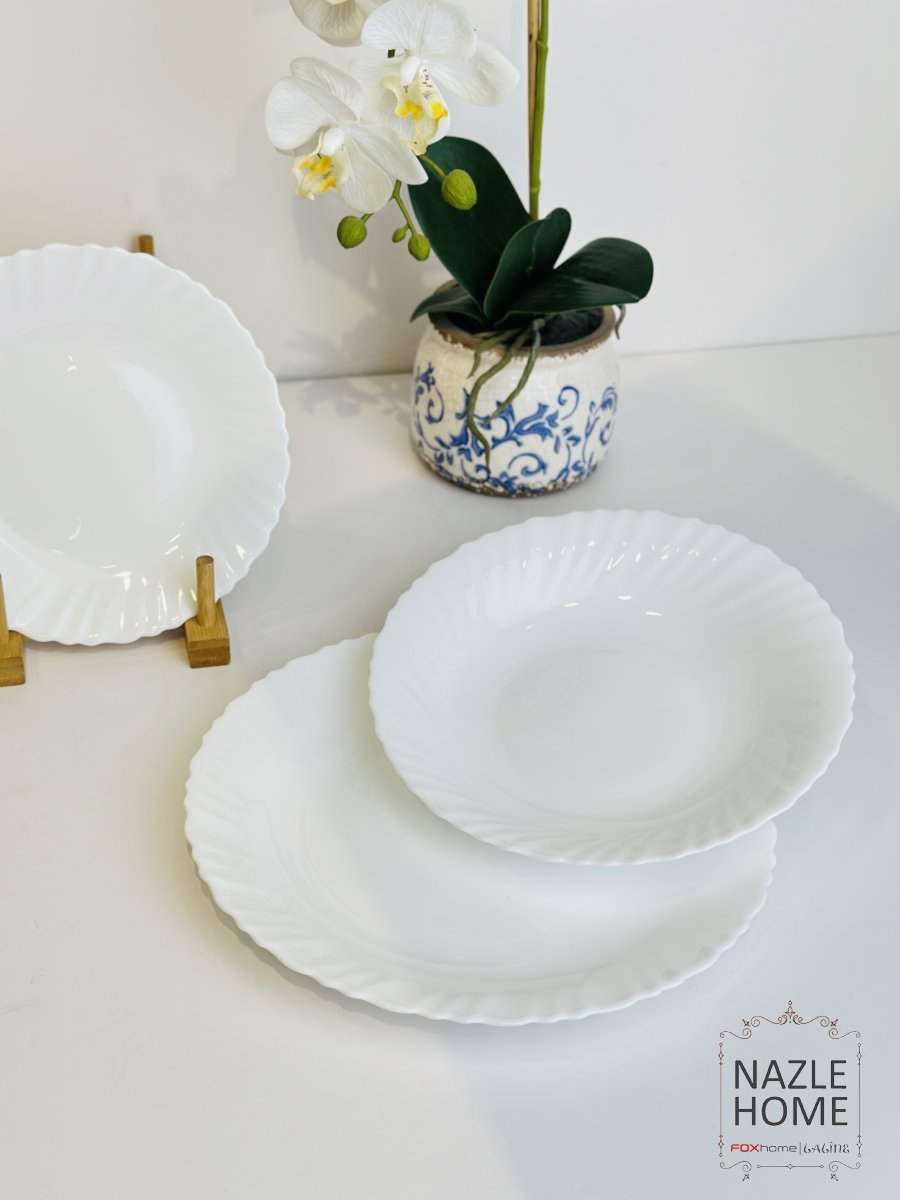 طقم صحون 18 قطعة ابيض مزخرف