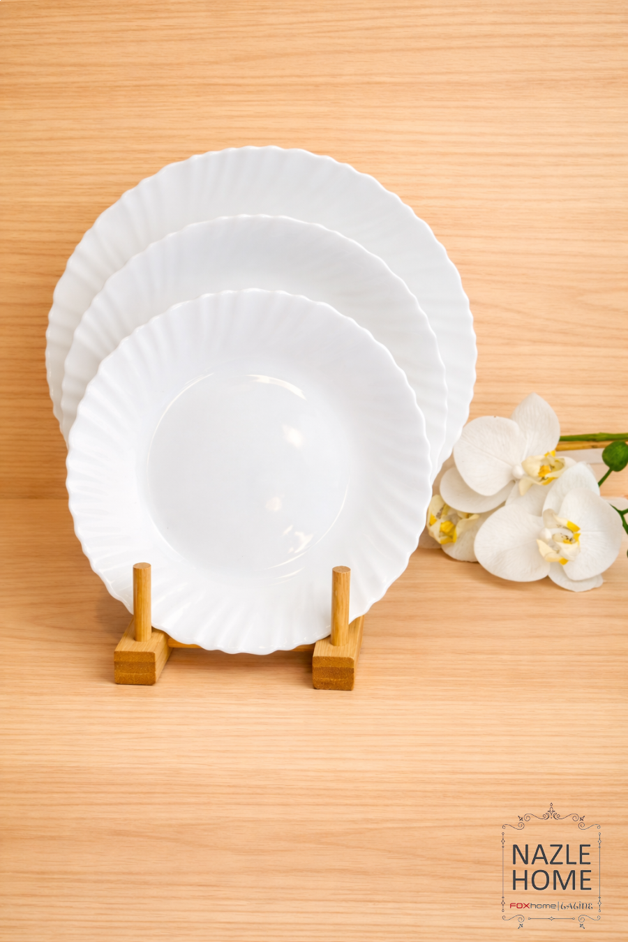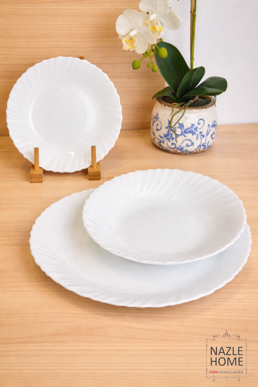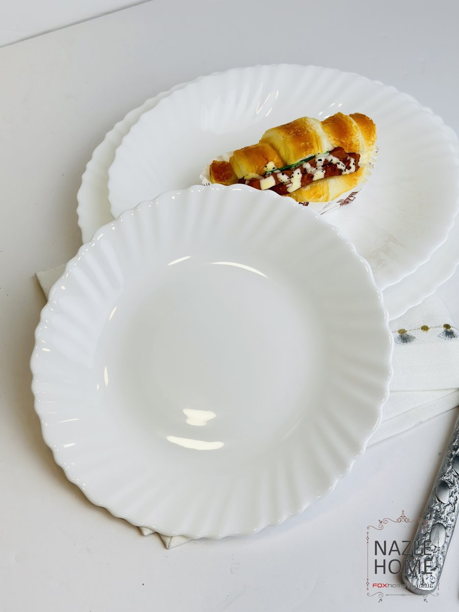 طقم صحون 18 قطعة ابيض مزخرف