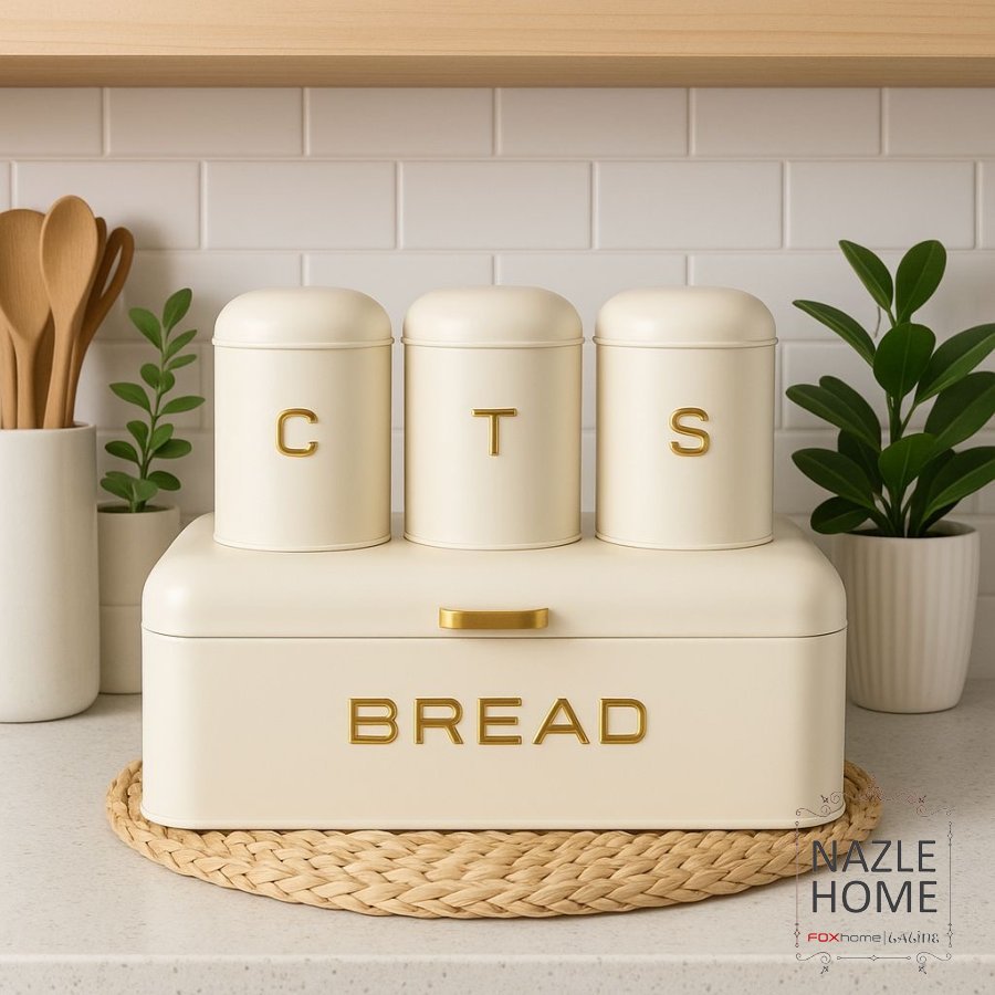 طقم حافظة خبز مع سكريات معدن لون افوايت