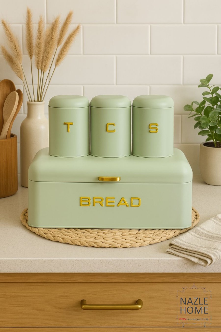 طقم حافظة خبز مع سكريات معدن لون اخضر