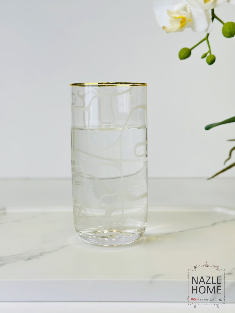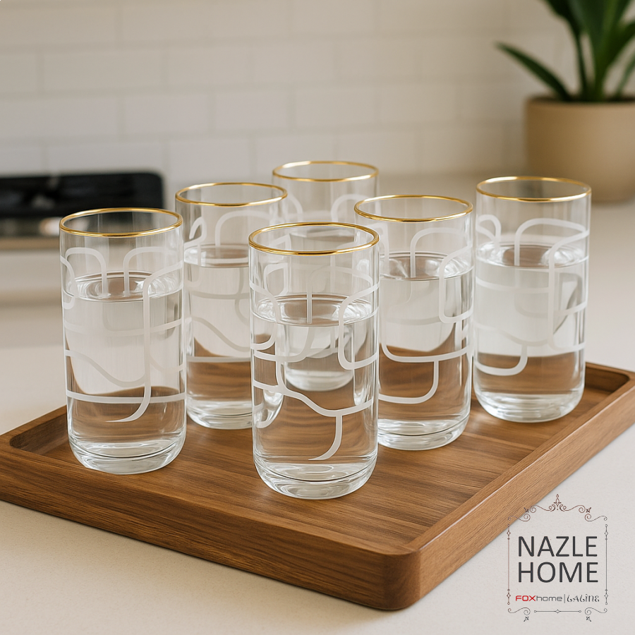 طقم 6 كاسات ماء شفاف زخرفة ابيض