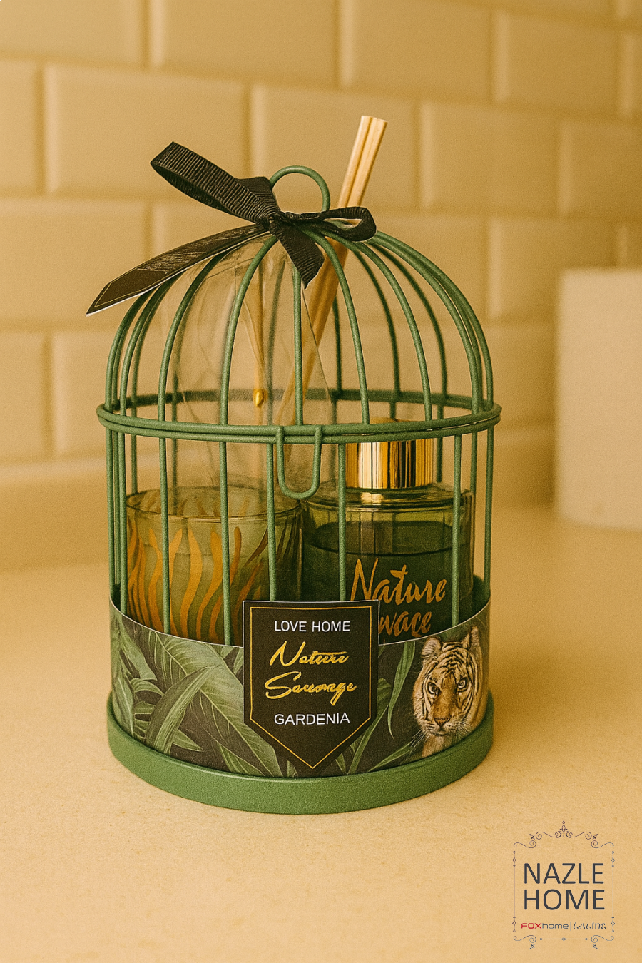 طقم معطر وشمعة مع قفص