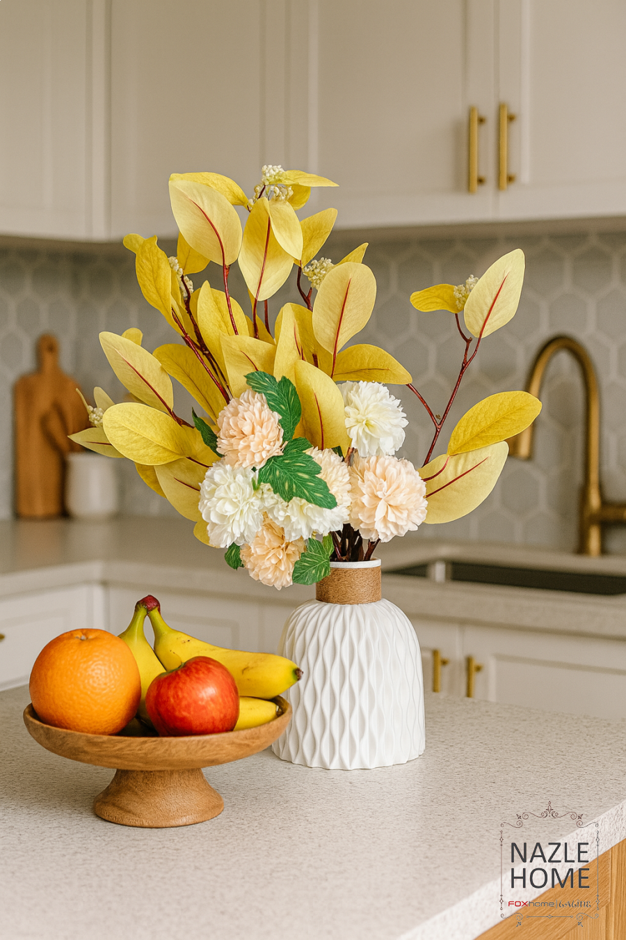 فازة ديكور - اصفر وابيض