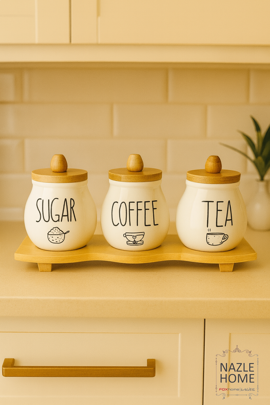 طقم سكريات ابيض مع قاعدة خشب - حجم صغير