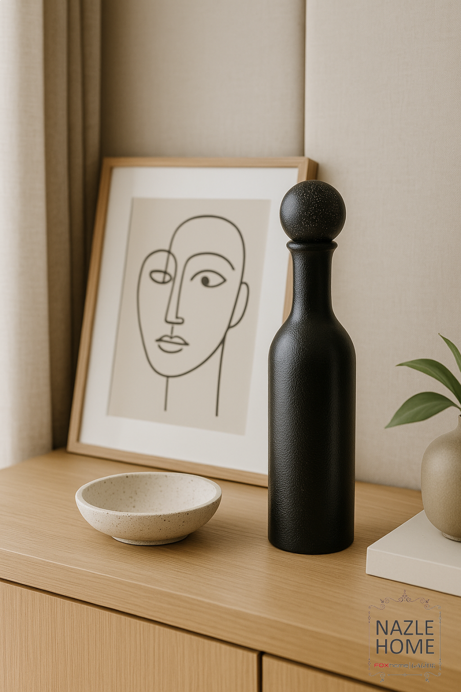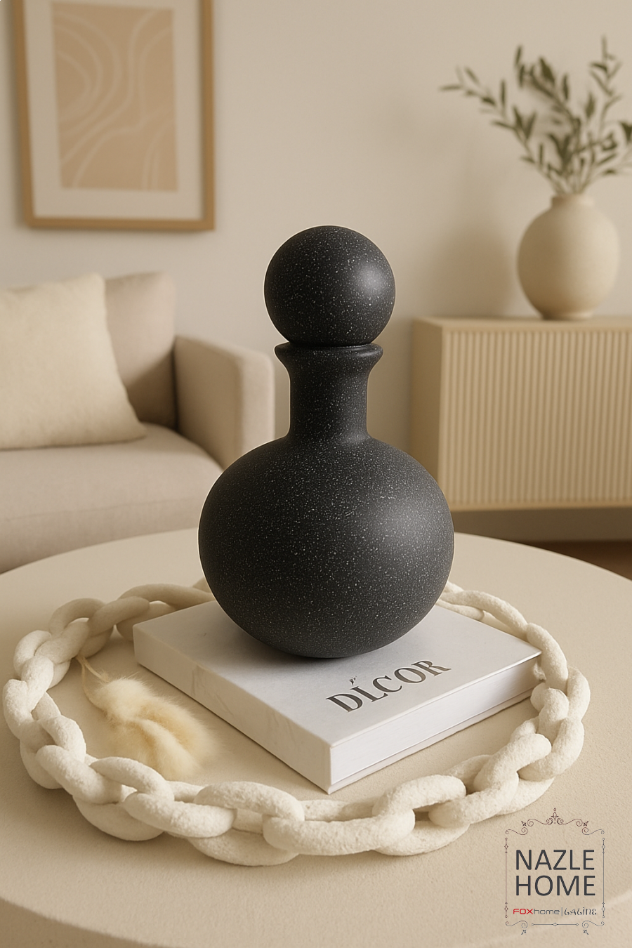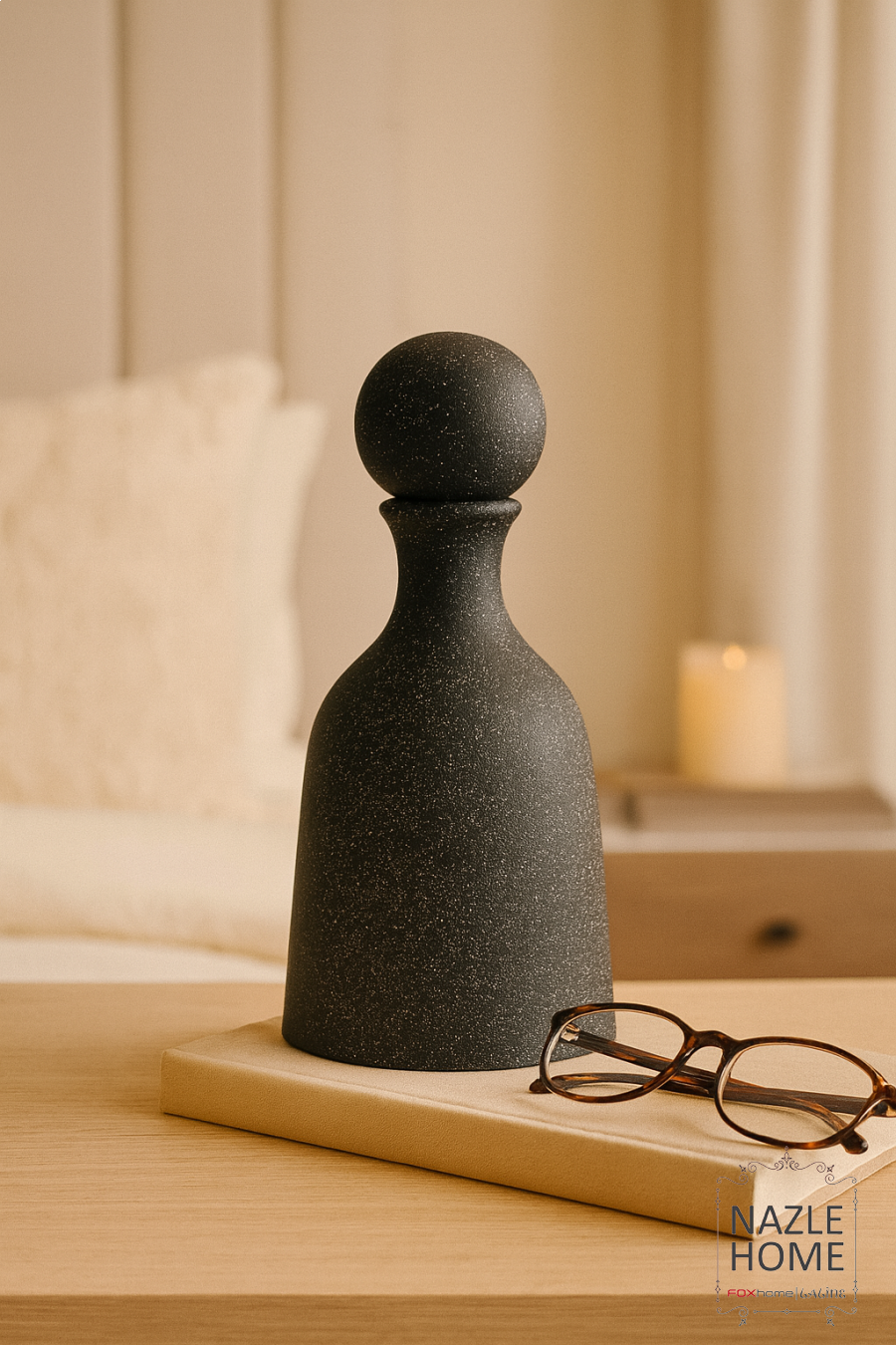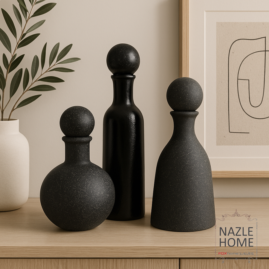 طقم تحف حجر مع غطا طابة - لون اسود