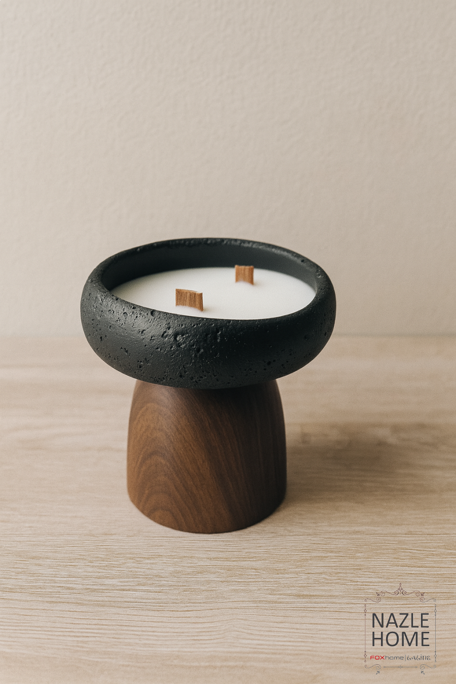 شمعة حجر قاعدة خشب