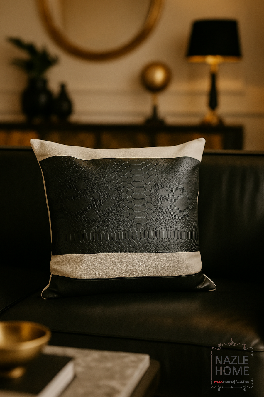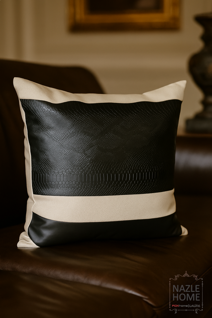 كوشينز جلد اسود مع بيج 40*40