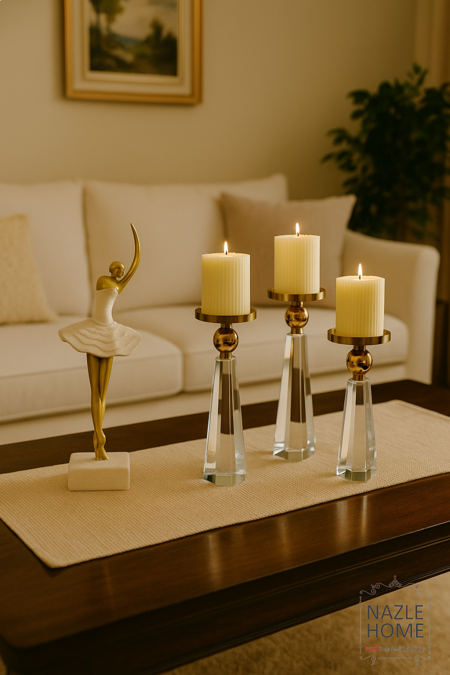 طقم شمعدان كريستال 3 احجام مع ذهبي