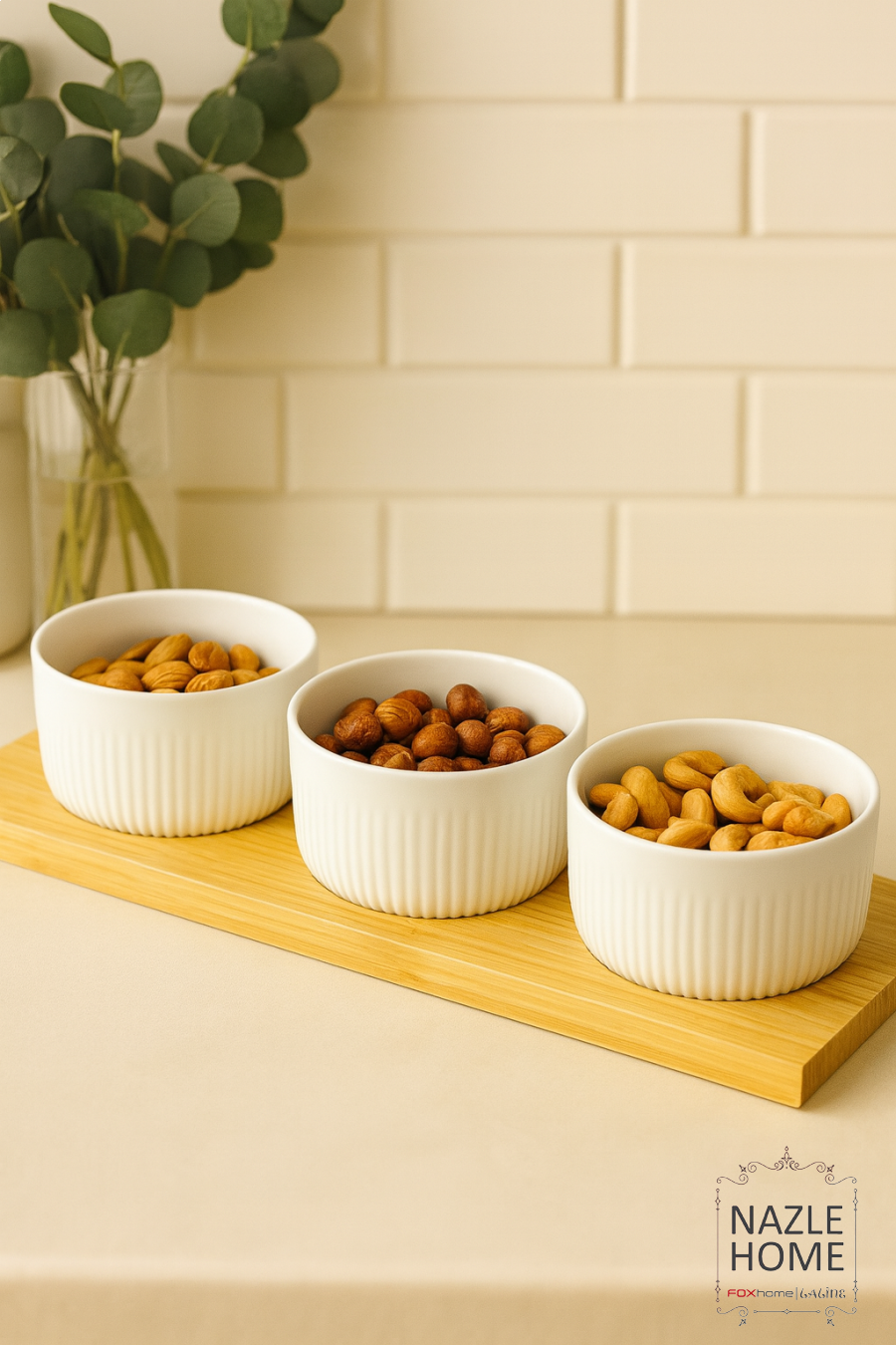 طقم قاعدة خشب مع 3 صحون للتقديم