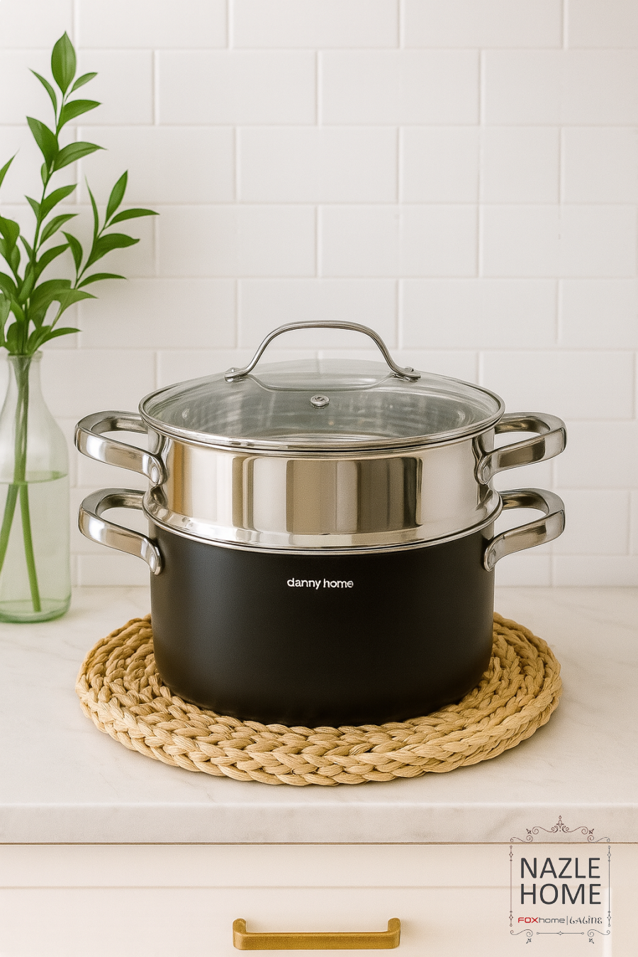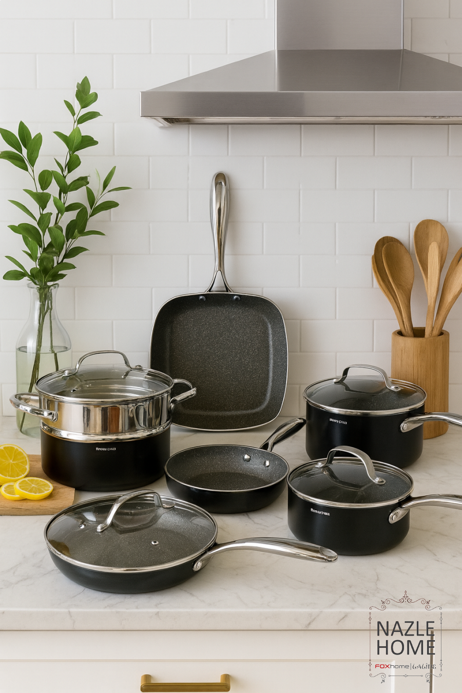 طقم طناجر جرانيت 12 قطعة - اسود وسلفر