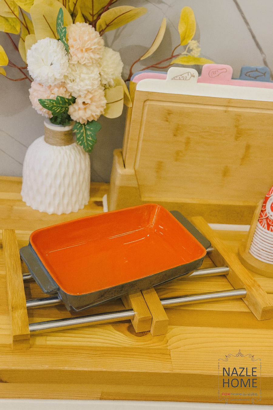 كوستر خشب مع معدن قابل للتصغير والتكبير