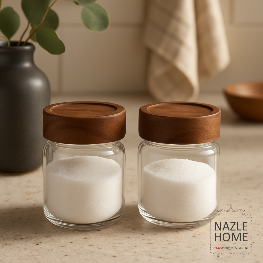 طقم علبتين زجاج غطا خشب