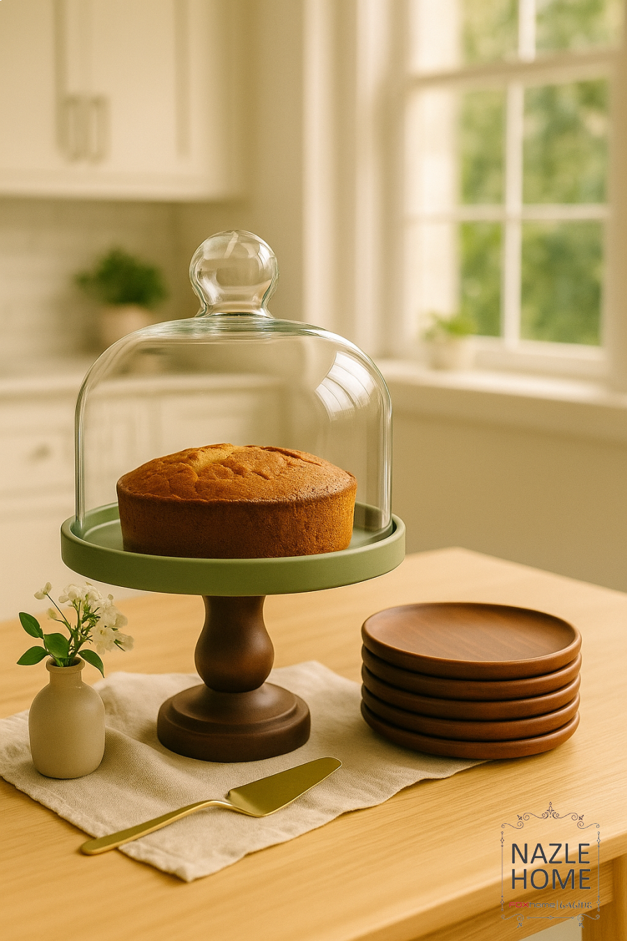 مضيفة زجاج مع قاعده خشب +6 صحون