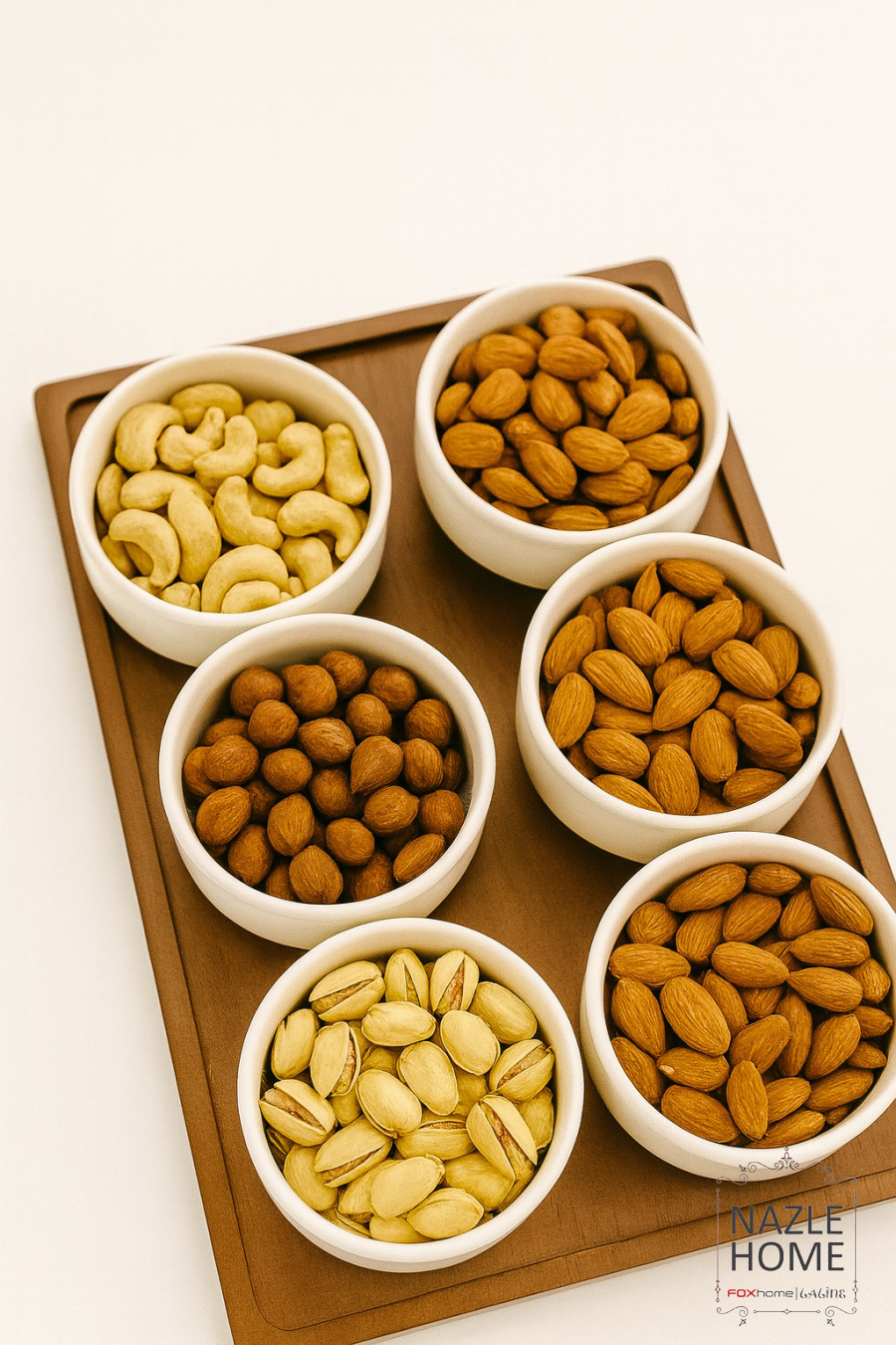 طقم صينية خشب مع ٦ صحون - افوايت
