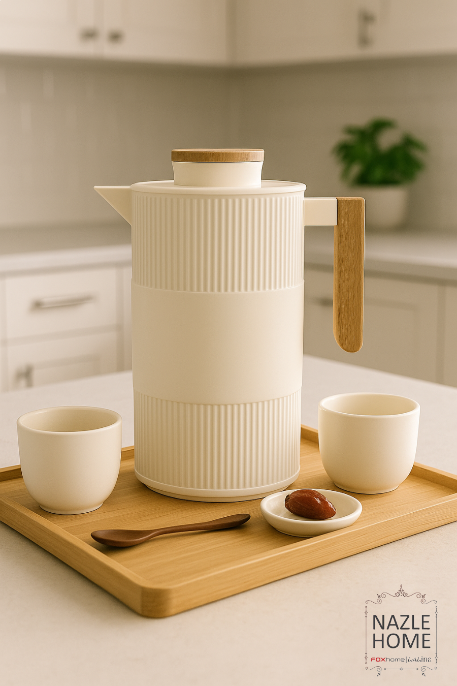 تيرموس افوايت مخطط مع مسكة خشب