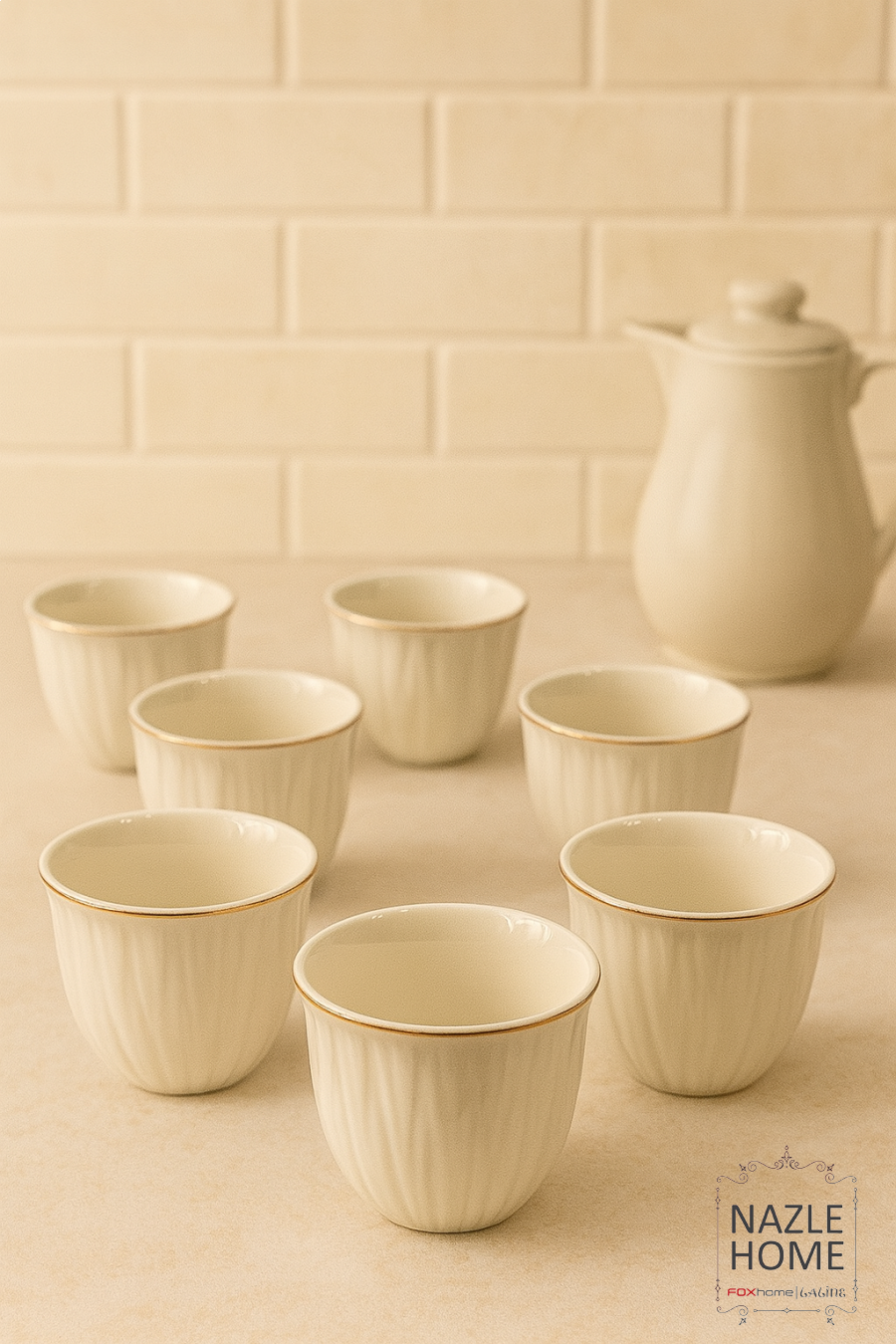 طقم 12 فنجان قهوة ساده محزز