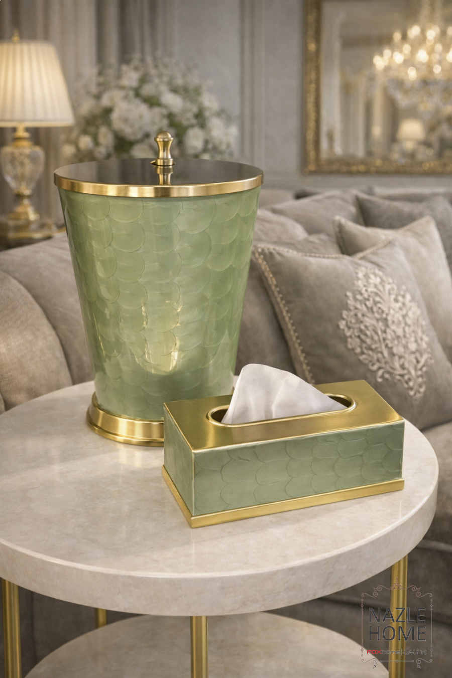 طقم سلة مع بكيت محارم نحاس هندي مع اخضر