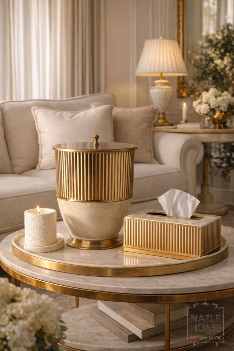 طقم سلة مع بكيت محارم نحاس هندي لون افوايت