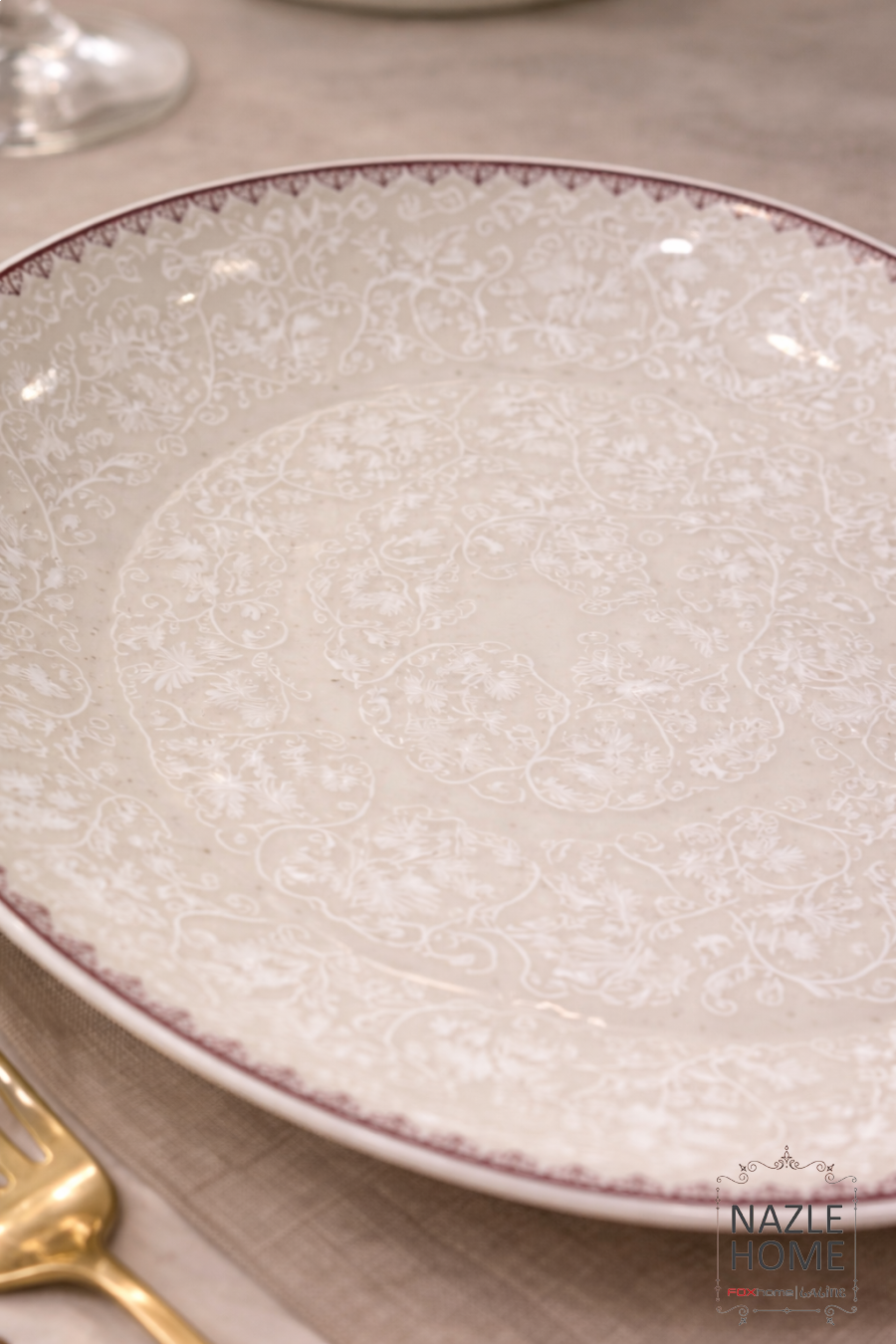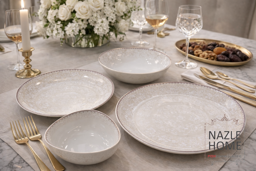 طقم سفرة ابيض منقش ورد 24 قطعة