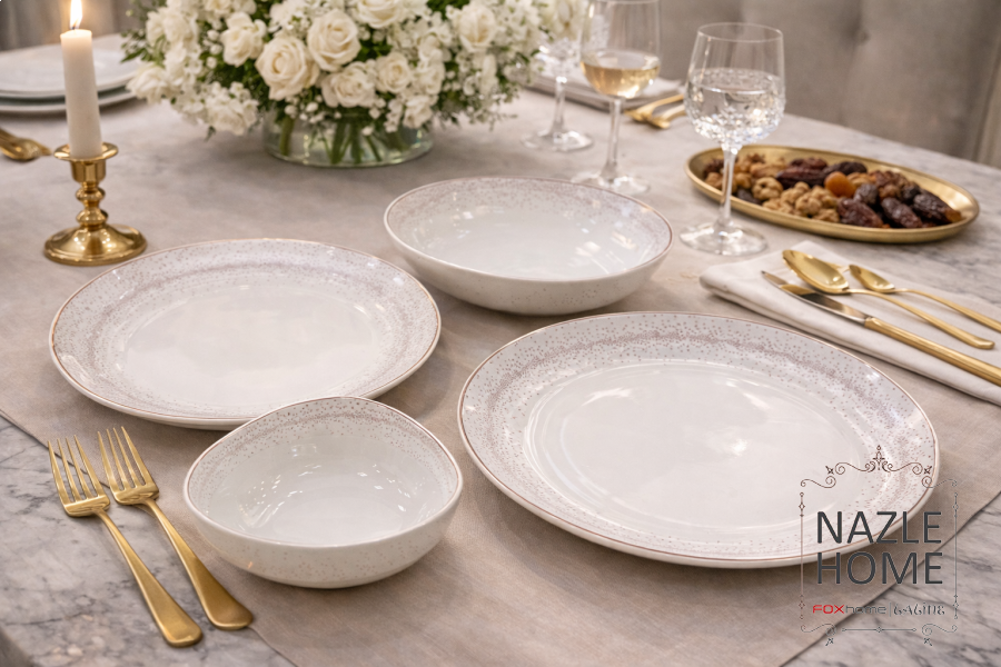 طقم سفرة ابيض منقط 24 قطعة