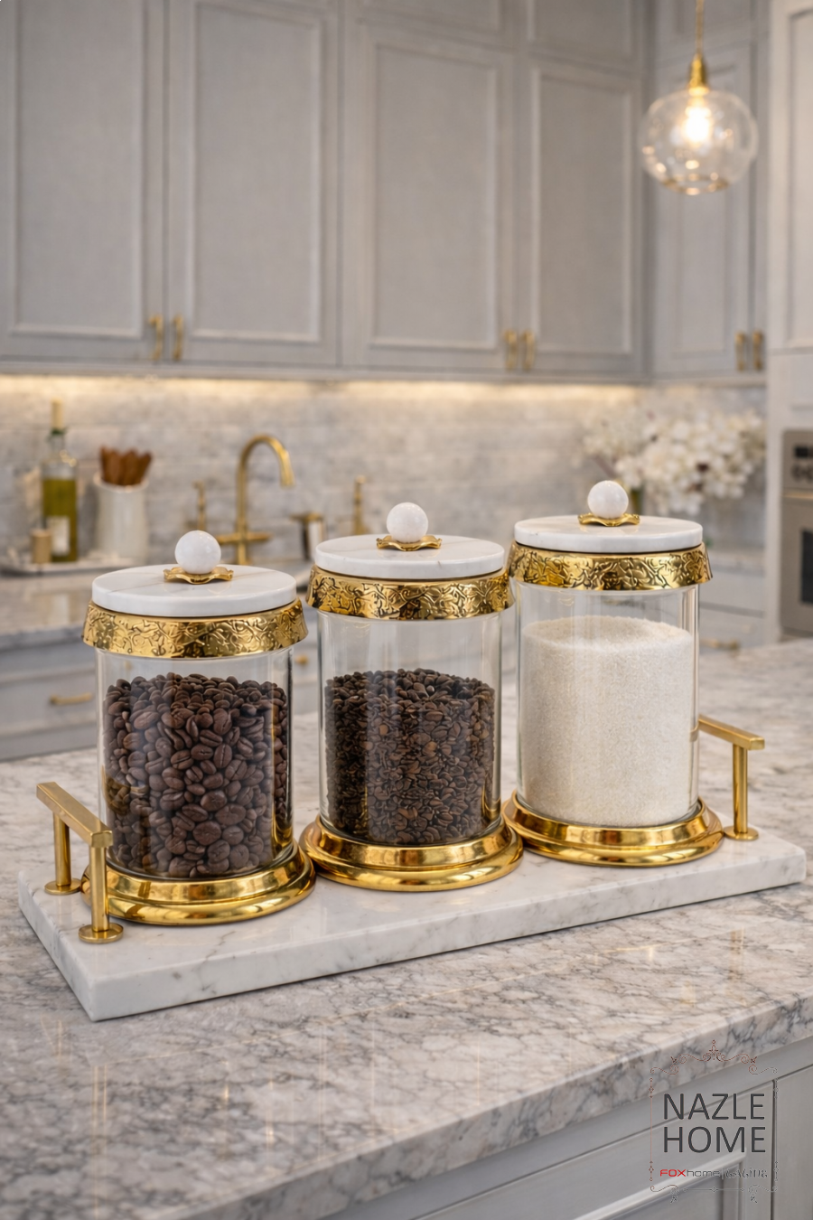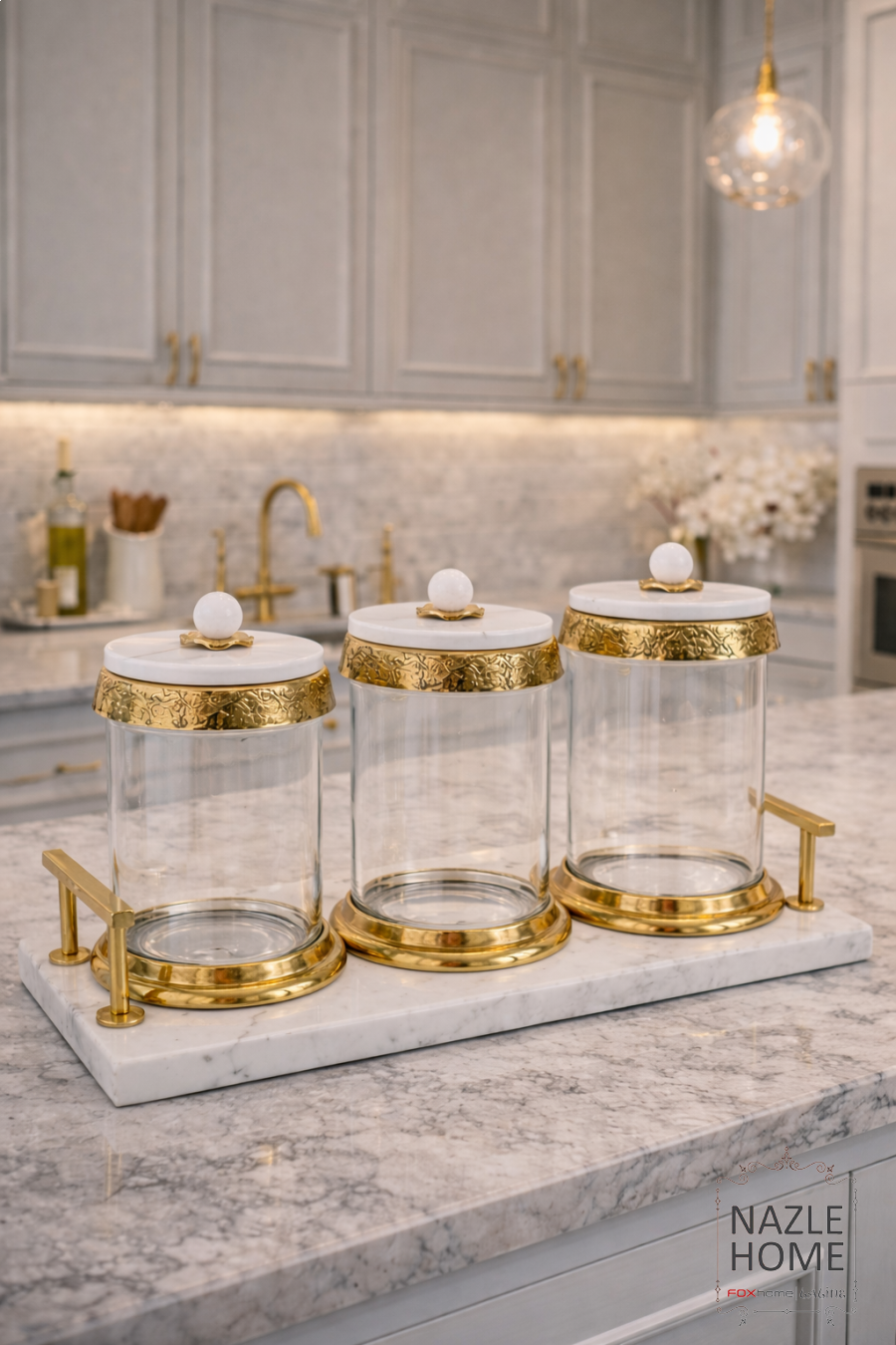 طقم سكريات شفاف هندي مع صينية حجر ماربل