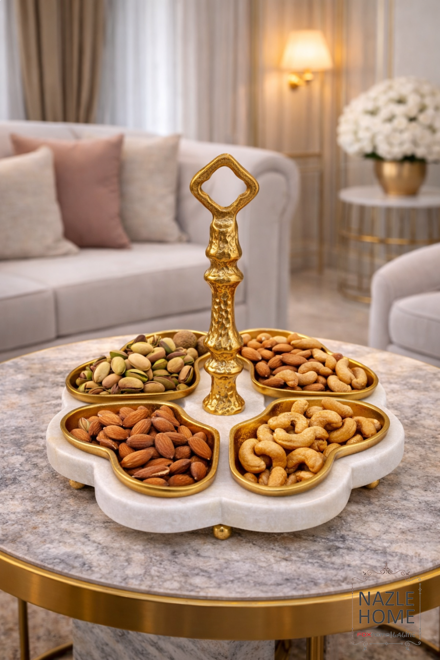 ستاند رخام مع 4 صحون هندي للتقديم