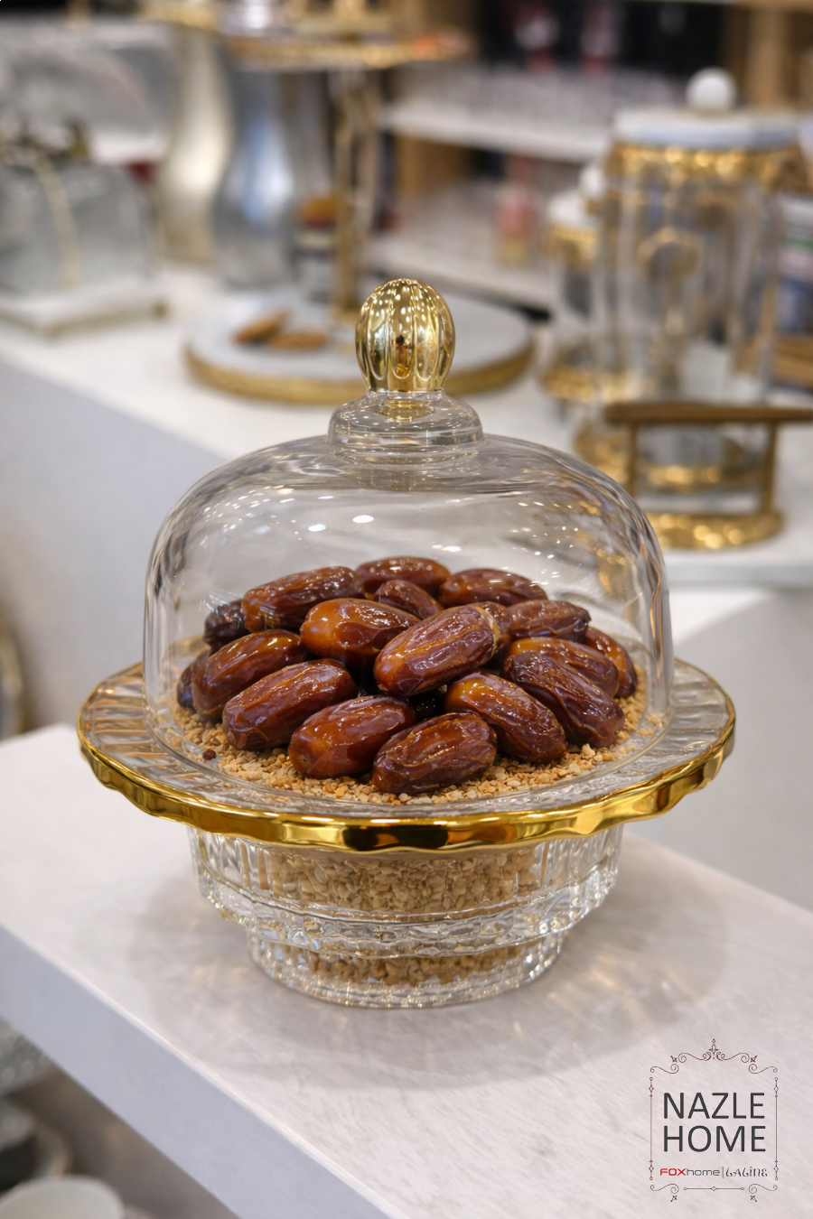 مضيفة شفاف مع ذهبي حجم صغير للتمر