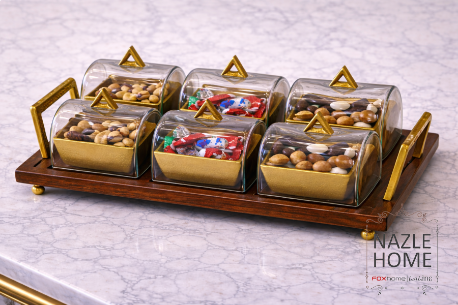 مضيفة نحاس صينيه مع 6 صحون هندي