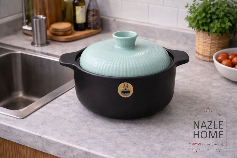 طنجرة بورسلان اسود وازرق