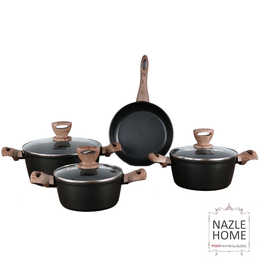 طقم كولينيرا 3 طناجر +مقلى اسود وخشب